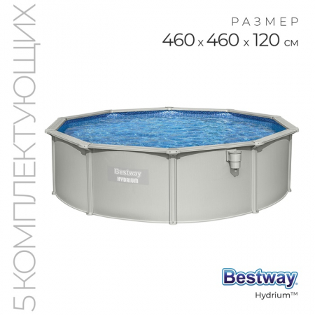 Каркас из нержавеющей стали быстро и легко собирается без дополнительных инструментов. Чаша представляет собой прочный трёхслойный материал, равномерно натянутый на металлическую основу. Внешняя часть укреплена листами из гофрированной стали. Для заполнения бассейна необходимо два часа.
