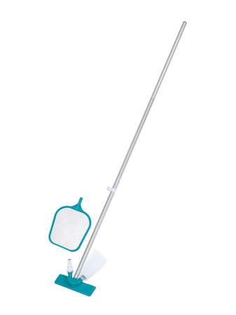 Набор для очистки бассейнов — это необходимый инвентарь, который должен быть у каждого обладателя каркасного или надувного бассейна. С ним вы затратите меньше сил и времени на очистку, а сам процесс пройдёт легко и приятно. Набор состоит из алюминиевой телескопической трубки, с помощью которой вы сможете достать даже до самого дальнего угла бассейна, вакуумной щётки с прозрачным сетчатым мешочком для сбора мусора под водой, а также сачка для улавливания крупного плавающего мусора, например листьев, травы и прочего.
