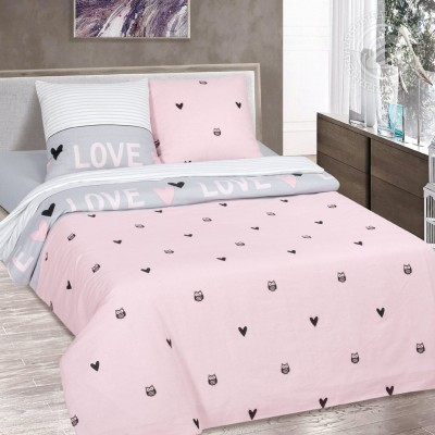 Весьма необычным является новый рисунок на ткани под названием «Гламур». Изображение определенно имеет свой стиль: розовый фон, на котором будто разбросаны маленькие черные сердечки и милые совята, серая лента с надписью крупными буквами LOVE, и бело-серые полоски наверху. Стильное решение для комплекта постельного белья. На такую покупку могут решиться современные молодые люди и разнообразить привычные изображения более старшее поколение. В любом случае, сочетание цветов приятно радует глаз, а общая композиция необычная и стильная.