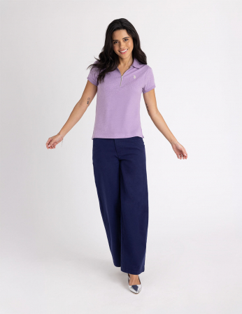 HALF ZIP PUFF SLEEVE HEATHER POLO SHIRT (арт. 216322-6E00A)