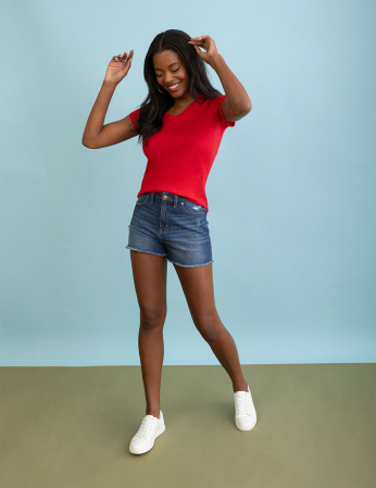 HIGH RISE CURVY SHORTS WITH RAW HEM