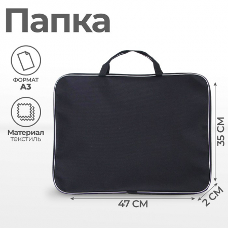 Папка для чертежей и рисунков А3, 470 х 350 х 20 мм, с ручками, текстильная, Calligrata Стандарт, Черная, плотность 600D (арт. 1093113)