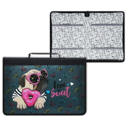 Папка-пенал для труда А4, 340 х 240 х 30 мм, с ручкой, молния вокруг, "Love is", ламинированный картон (объемный 3D-рисунок с эффектом металлика) (арт. 9947909)