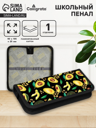 Пенал 1 секция, 90 х 195 х 25 мм, Calligrata "Авокадо классика", ламинированный картон (арт. 9308160)
