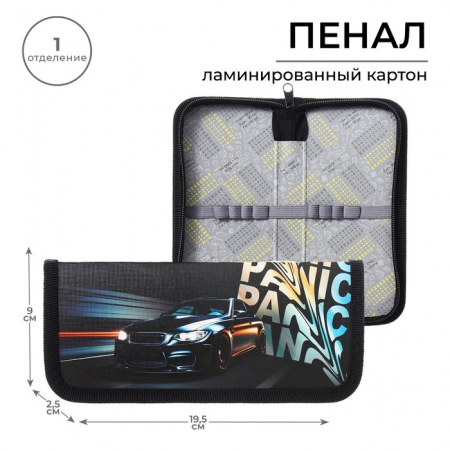 Пенал 1 секция, 90 х 195 х 25 мм, Calligrata "Тачка panic", ламинированный картон (арт. 10102851)
