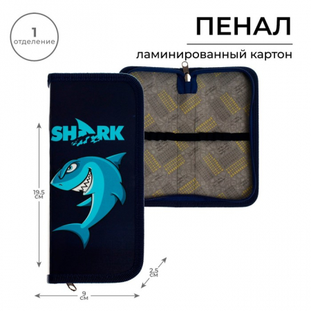 Пенал 1 секция, 90 х 195 х 25 мм, Calligrata "Акула", ламинированный картон (арт. 7506567)