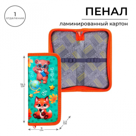Пенал 1 секция, 90 х 195 х 25 мм, Calligrata "Зверята", ламинированный картон (арт. 9308161)