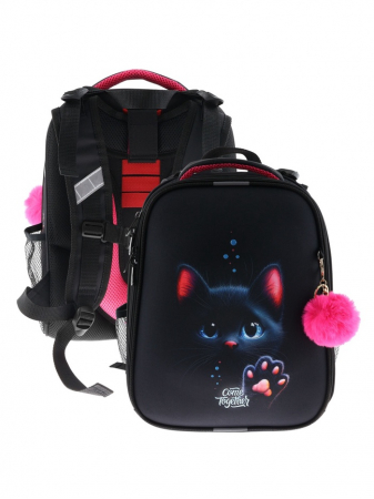 Плотная спинка с анатомическими элементами дополнительно укреплена пластиком, сверху – дышащая трехслойная сетка. Лямки-маечка плотные, мягкие. Регулируются по длине и высоте, что позволяет без труда отрегулировать их по росту ребенка. Ранец снабжен надежным нагрудным фиксатором и двумя боковыми карманами из прочной сетки. Есть удобная мягкая ручка для переноски и дополнительная петлевая ручка для размещения ранца на крюке