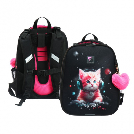 Рюкзак каркасный школьный 38?30?16 см, эргономичная спинка, Stavia «Марсианский котик», чёрный (арт. 10293196)