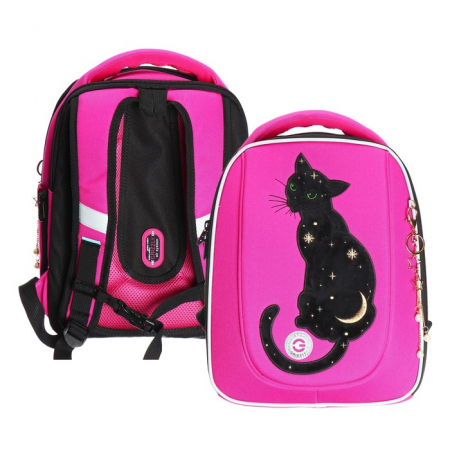 У школьного рюкзака формованная лицевая часть, жесткая анатомическая спинка и жесткое дно на ножках. Содержимое надежно защищено. А еще такая конструкция равномерно распределяет нагрузку на спину. Чтобы не уставали руки и плечи, мы сделали широкие лямки и нагрудную стяжку. Конструкция детской сумки не деформируется при нагрузке и создает надежную защиту содержимого. У школьного рюкзака два отделения. Основное отделение разбито на три отсека: для книг, тетрадей и папок А4, есть карман из сетки на молнии. Дополнительное жесткое отделение не даст помяться ценным вещам. Для безопасности в темное время суток мы добавили со всех сторон светоотражающие элементы. За счет водо- и грязеотталкивающей пропитки ранец долго остается как новый. Если он все же чем-то испачкался, мы рекомендуем ручную стирку в холодной воде.