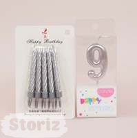 Комплект свечей №16 цифра -9-(серебр) + 1 упаковка серебристых свечек (арт. 0850542291)