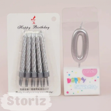 Комплект свечей №7 цифра -0-(серебр) + 1 упаковка серебристых свечек (арт. 695338675)