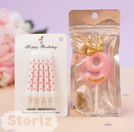 Комплект свечей цифра -9-(Mrs. Pink) + 1 упаковка Pink (10 шт.) (арт. 2047129945)
