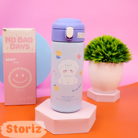 Термос "Lazy and Cute" с трубочкой, сине-фиолетовый, 380 мл. (арт. 01156653203)
