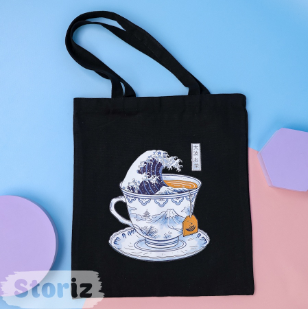Сумка тканевая "Большая волна в Канагаве", черный, 555-C (арт. 0156707103)