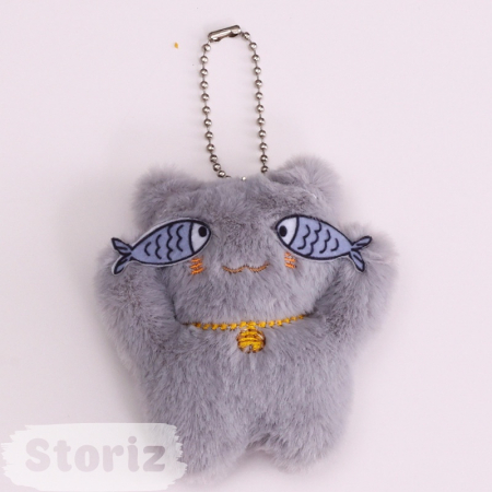 Мягкий брелок "Котик" глаза-рыбки, серый (арт. 0139799268)