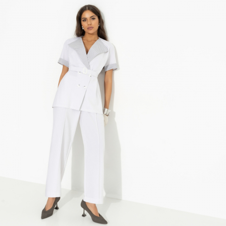 Брючный костюм с карманами, Прогулки по Монмартру (grey, 2 в 1, с поясом) (арт. 00000011669-48)