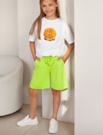 Свободные шорты с карманами, выполнены из премиального облегченного футера. Мягкое трикотажное полотно создаст приятное прилегание к телу. Модная форма подарит комфорт и сделает образ ребенка стильным. С футболкой F49.403 шорты составят отличный комплект, мотивирующий на движение!