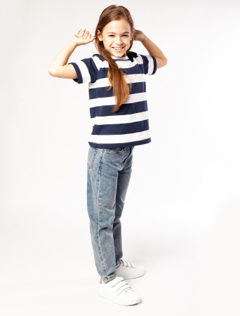 Джинсы mom-fit выполнены из мягкого прочного хлопка, который пропускает воздух и быстро отводит лишнюю влагу. В ткань добавили эластан, поэтому вещь хорошо держит форму и не сковывает движения. Модель дополнена искусственными потертостями и высококачественной металлической фурнитурой с логотипом бренда.