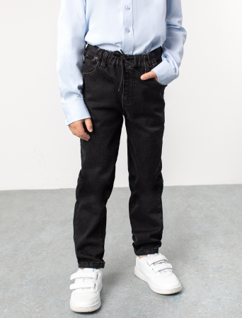 Черные джинсы выполнены из мягкого хлопка. Чтобы модель садилась по фигуре максимально комфортно, в состав денима добавили эластан. Удобства добавляют отсутствие ширинки и широкий эластичный пояс, не впивающийся в тело с дополнительным шнурком.