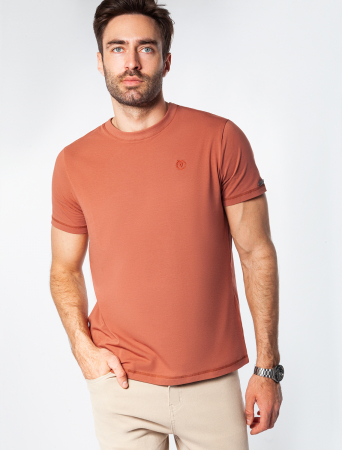 Футболка с вышитым логотипом бренда выполнена из премиального хлопка. Особым преимуществом является наличие эластана в составе изделия. Очень приятная на ощупь и комфортная при носке, футболка сохранит свой безупречный внешний вид в течении долгого времени. Модель дополнена нашивкой из эко-кожи с логотипом VILATTE.