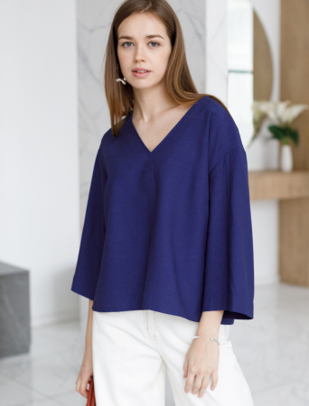 Свободная блузка со спущенным плечом выполнена из плотного лиоцелла. Добавление синтетических волокон в составе изделия предотвращает сминаемость. Модель с V-вырезом дополнена боковыми разрезами и декоративным швом спереди. Подходит для любой фигуры. Для создания расслабленного образа, сочетайте в костюме с брюками D24.214, D24.218, шортами D28.054 и юбкой D26.181