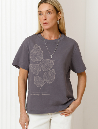 Футболка выполнена из фактурного полотна из 100% хлопка. Модель с лаконичным авторским принтом легко впишется в любой весенне-летний гардероб. Ткань имеет характерный рисунок черточки за счет сочетания разных волокон хлопка 140-150 г. Хорошо держит форму и поддерживает комфортный микроклимат в течении дня.