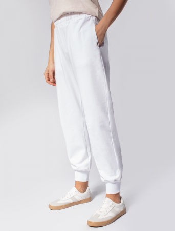Брюки выполнены из тонкого хлопкового футера. Эластичный материал хорошо пропускает воздух, позволяя телу дышать, и легко тянется, не ограничивая движения. Пояс на резинке дополнен внутренним шнуром, для комфортной регулировки изделия. Брюки сочетаются в костюме с футболкой D49.003 и худи D49.006