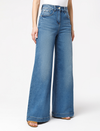 Джинсы-трубы выполнены из эластичного денима. Модель с высокой посадкой на талии и легкой стиркой, гармонично впишется в любой гардероб в стиле smart casual. Свободный крой не сковывает движений и вытягивает силуэт. На поясе брендированный патч.