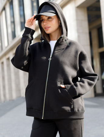Худи на молнии выполнено из премиального футера трехнитки с теплым начесом. Модель дополнена боковыми карманами и золотистой фурнитурой, что поддерживает актуальный стиль спорт-шик. Свободный крой подходит для любой фигуры. Ранней осенью или поздней весной можно носить в качестве верхней одежды. Сочетается в костюме с брюками D44.133