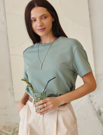 Футболка выполнена из премиального хлопка. Базовая модель, которая хорошо будет сочетаться в гардеробе с любым низом и любым дополнительным верхом вне зависимости сезона. Эластан в составе способствует формоустойчивости и меньшей сминаемости. Изделие украшено трендовым открытым срезом и логотипом бренда.