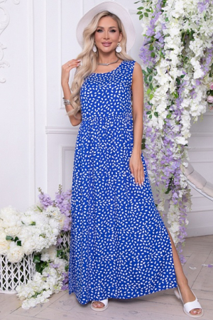 Платье из комфортного вискозного текстильного полотна свободного силуэта длиной миди с разрезами по бокам.
