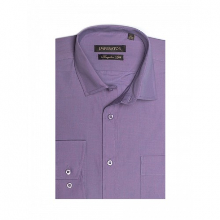 Цвет сливовый. Воротник классический рубашечный с уплотнением. На груди накладной карман. Застежка на пуговицах.