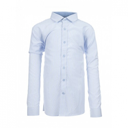 Состав: 65% хлопок, 35% полиэстер. Цвет голубой. Отделка контрастной тканью по вороту, планке и на манжетах; "заплатки" на локтях. Крой прямой. Длинный рукав. Товар сертифицирован.