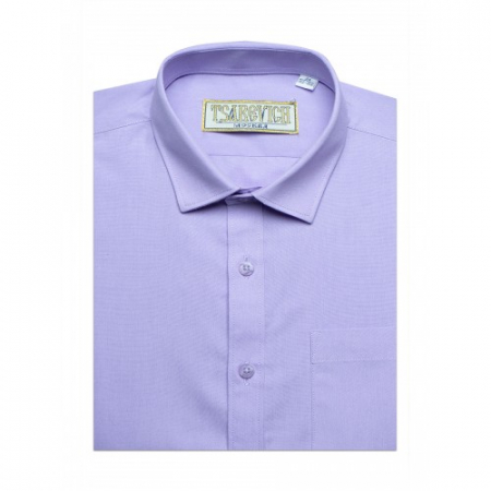 Сиреневая рубашка без декора органично дополнит комплект для школы.