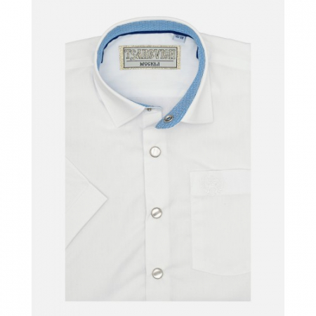 Белоснежная школьная рубашка для мальчика от российского бренда Tsarevich прекрасно подойдет как для повседневной носки в школу, так и для торжественных мероприятий.