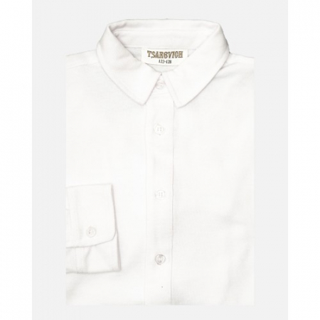 Белоснежная трикотажная рубашка для мальчика от российского бренда Tsarevich прекрасно подойдет для повседневной носки в школу.