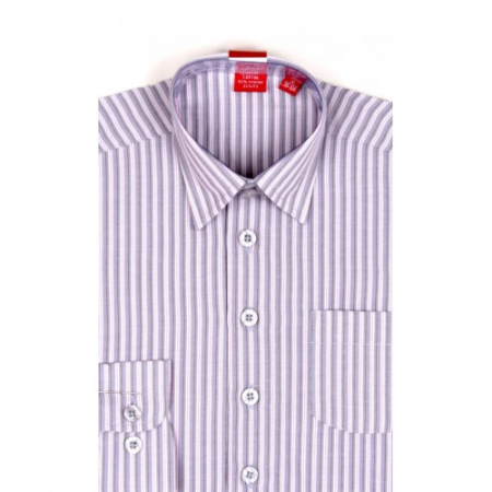 Модель с накладным нагрудным карманом. Цвет серый в розовую полоску. Крой прямой. Длинный рукав. Товар сертифицирован.