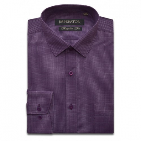 Модель с накладным нагрудным карманом. Цвет темно-сиренвый (мелкая клетка). Крой прямой. Длинный рукав. Товар соответствует техническому регламенту о безопасности продукции легкой промышленности.