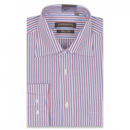 Приталенная модель с накладным нагрудным карманом. Цвет синий с белым с красным (полоска). Длинный рукав. Товар соответствует техническому регламенту о безопасности продукции легкой промышленности.