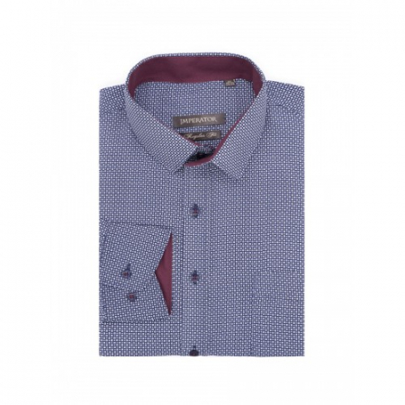 Цвет: темно-синий. Рисунок: классический принт. Отделка контрастной тканью по вороту, планке и на манжетах.