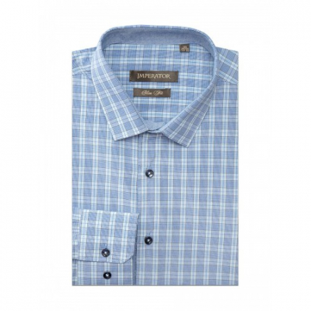 Модель прямого силуэта с накладным нагрудным карманом. Цвет фиолетовый/голубой (крупная клетка). Длинный рукав. Товар соответствует техническому регламенту о безопасности продукции легкой промышленности.