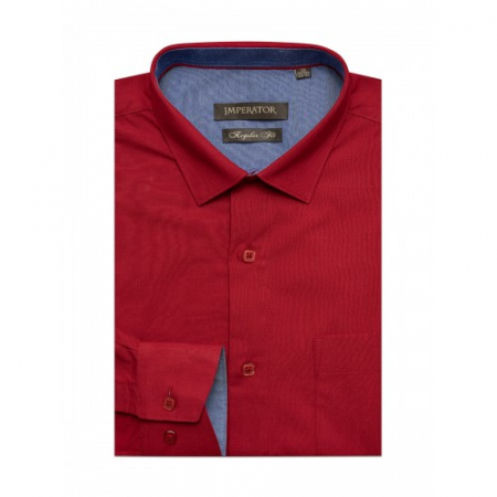 Модель приталенного силуэта, комбинированная контрастной тканью по внутренним вороту и манжетам. Цвет бордовый. Длинный рукав. Товар соответствует техническому регламенту о безопасности продукции легкой промышленности.