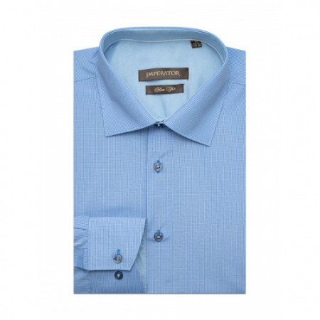 Модель приталенного силуэта с накладным нагрудным карманом, комбинированная контрастной тканью по внутренним вороту и манжетам. Цвет голубой (мелкая клетка). Длинный рукав. Товар соответствует техническому регламенту о безопасности продукции легкой промышленности.