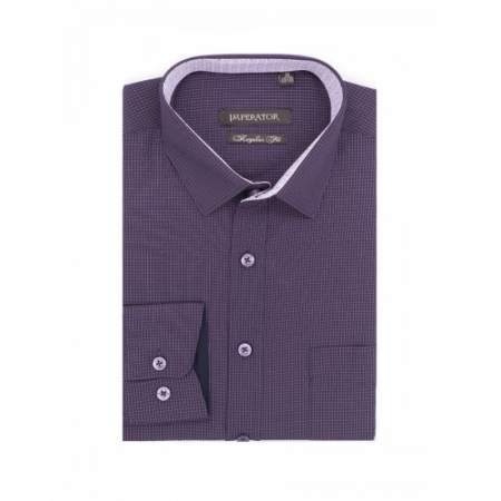 Модель приталенного силуэта, комбинированная контрастной тканью по внутренним вороту и манжетам. Цвет темно-фиолетовый (клетка). Длинный рукав. Товар соответствует техническому регламенту о безопасности продукции легкой промышленности.