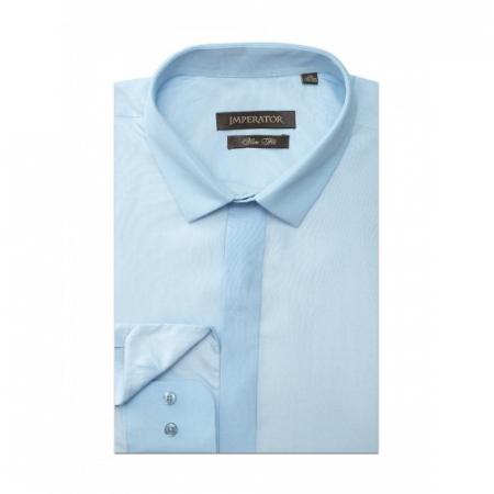 Модель приталенного силуэта с накладным нагрудным карманом. Цвет голубой. Длинный рукав. Товар соответствует техническому регламенту о безопасности продукции легкой промышленности.