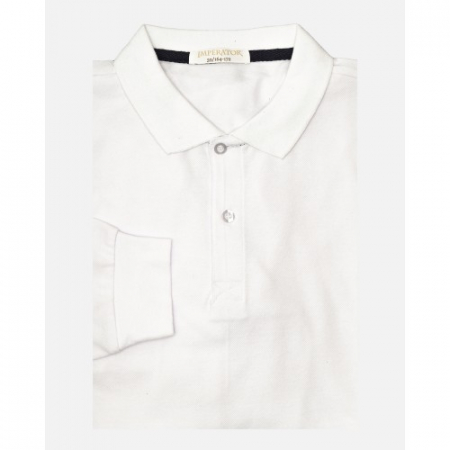 Белоснежное поло с длинными рукавами от российского бренда "Imperator" легко пропишется в мужском образе.