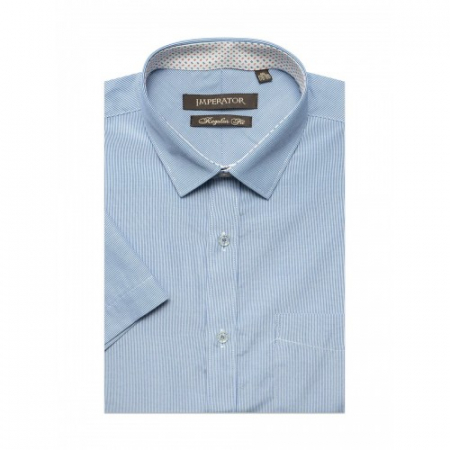 Модель прямого силуэта, комбинированная контрастной тканью по внутренним вороту и манжетам. Цвет голубой (полоска). Короткий рукав. Товар соответствует техническому регламенту о безопасности продукции легкой промышленности.
