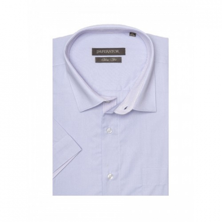 Модель приталенного силуэта с накладным нагрудным карманом, комбинированная контрастной тканью по внутренним вороту,полочке и манжетам. Цвет сиреневый. Короткий рукав.Товар соответствует техническому регламенту о безопасности продукции легкой промышленности.