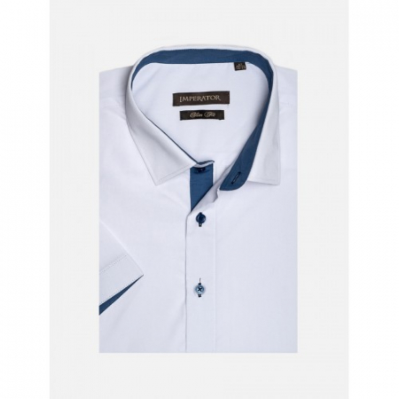 Модель приталенного силуэта с накладным нагрудным карманом, комбинированная контрастной тканью по внутренним вороту и манжетам. Цвет белый. Короткий рукав.Товар соответствует техническому регламенту о безопасности продукции легкой промышленности.